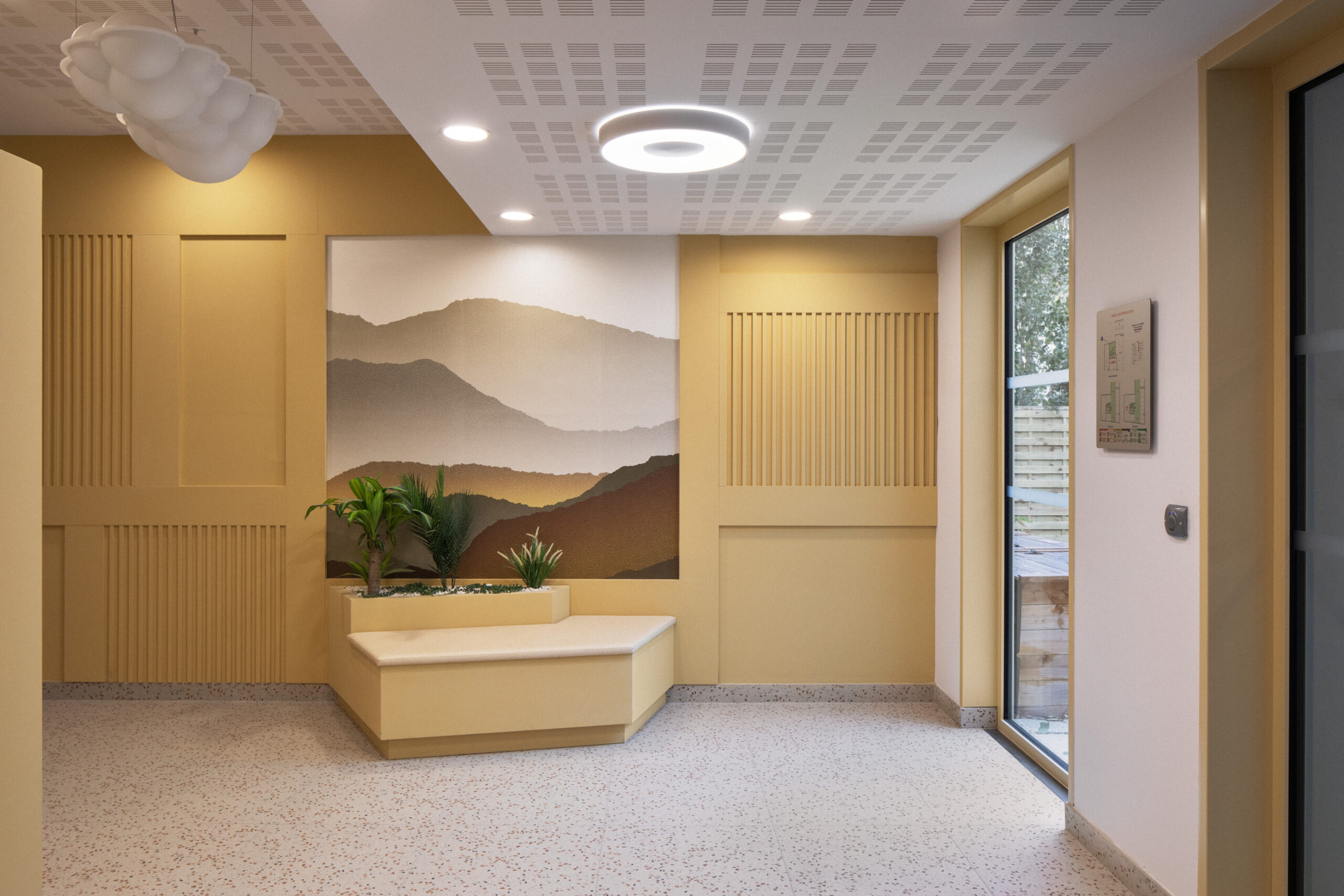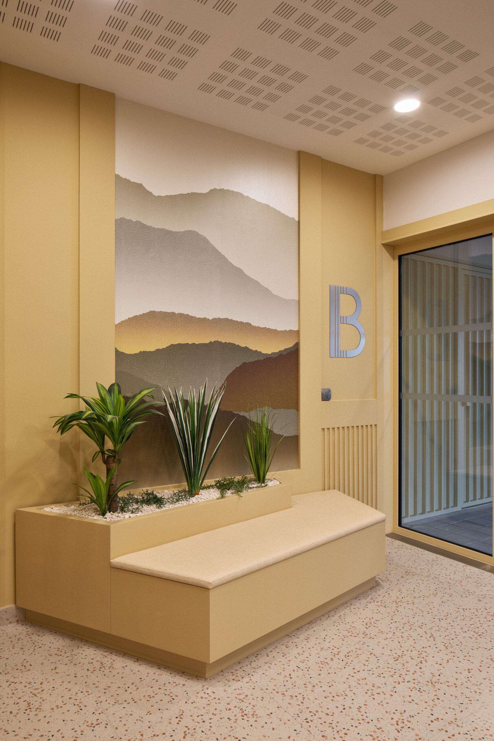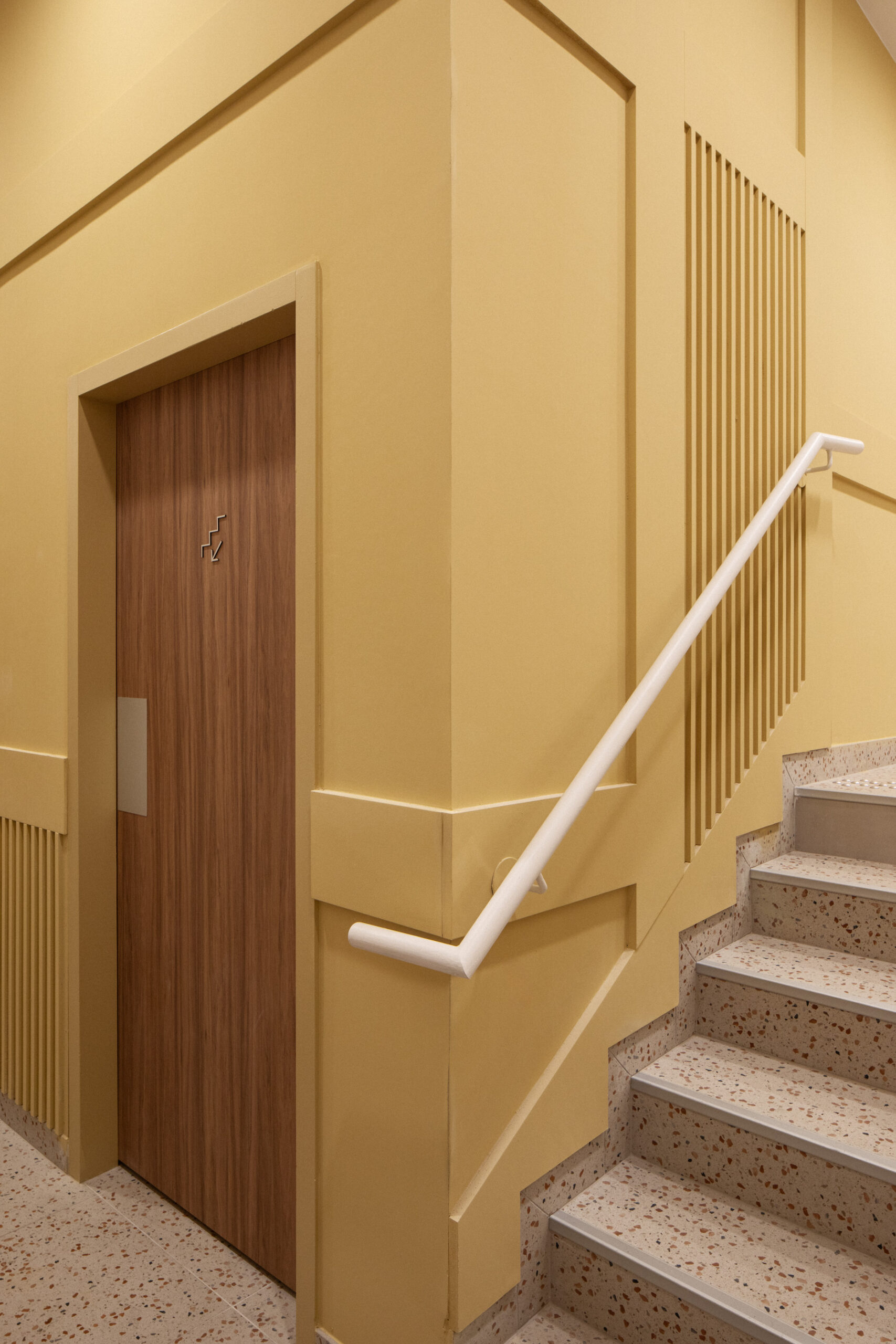 Typologie du projet : Hall et parties communes pour Bati Armor Situation géographique : Rennes – Rue de Lorient Date de réalisation: 2025 Crédit photo : Cyril Folliot